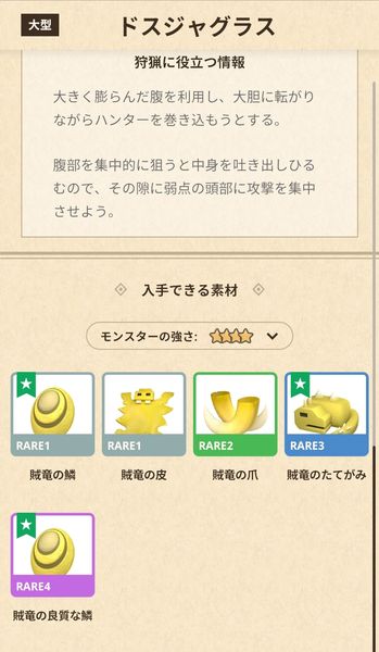 ★6以上のモンスターを安定狩猟してくると『固有レア5素材』自体が多くの数は要求されることはない為、苦労するのはこちらも到達時点のみな場合が多い