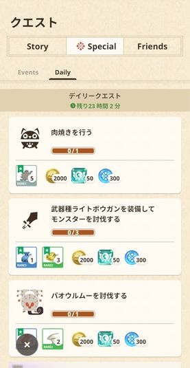 それらをクリアして強化素材も入手できるので、タスク消化しつつモンスターを狩猟するのが面白いところ