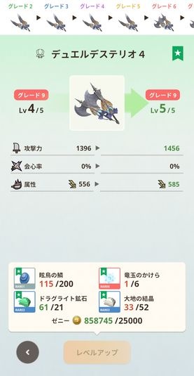特に体力の上昇量が半端なく、適当なグレード5レベルではドスジャグラス相手でもかなりの苦戦を強いられる
